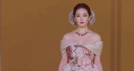 正在聚光灯下和一众男星的陪衬中,华服配佳丽,2025年刘亦菲露脸频次很高,